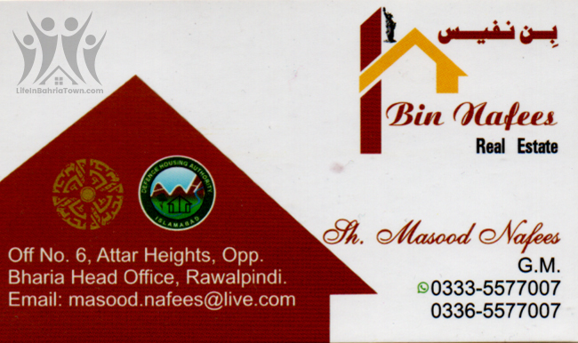 Bin Nafees Real Estate Ch. Masood Nafees Real Estate 03335577007 03335*** show Off no. 6, Attar Heights, Opp Bahria Head Office, Rawalpindi Save Submit Review Share Share This Post: facebook twitter linkedin google pinterest Photos Description We operate in all segments of the real estate market, from residential, offices, retail and leisure. Add Review & Rate Reply comment Cancel replyName Email Save my name, email, and website in this browser for the next time I comment. Be the first to review “Bin Nafees Real Estate” Cancel reply Quality Location Service Price Name Email Save my name, email, and website in this browser for the next time I comment. Review Drop images to upload or Gallery Images Maps Map Get Directions Close Business Info Get Directions Off no. 6, Attar Heights, Opp Bahria Head Office, Rawalpindi 03335577007 03335*** show Today Open MondayOpen All DayTuesdayOpen All DayWednesdayOpen All DayThursdayOpen All DayFridayOpen All DaySaturdayOpen All DaySundayOpen All Day Nearby listings Find more Real Estate near Bin Nafees Real Estate Browse Nearby Bakeries Boutiques & Tailors Cash & Carry Cosmetic Education Electronics Eye Fast Food Garments General Store Hardware & Sanitary Health Clinics Home Services Jewelry Meat Shops Mobiles and Computers Optics Pharmacy Services Shopping Spa & Saloon Sports & Stationery Travel & Tour Show all Statistic 102 Views May 18, 2023