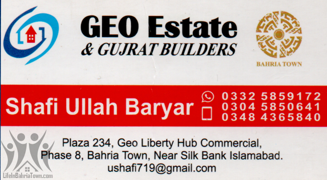 Geo Estate & Gujrat Builders Shafi Ullah Baryar Real Estate 03325859172 03325*** show Plaza 234, Geo Liberty Hub Commercial, Ph-8, Bahria Town, Near Silk Bnak Islamabad. Save Submit Review Share Share This Post: facebook twitter linkedin google pinterest Photos Description We have a team of exceptional real estate professionals. Add Review & Rate Reply comment Cancel replyName Email Save my name, email, and website in this browser for the next time I comment. Be the first to review “Geo Estate & Gujrat Builders” Cancel reply Quality Location Service Price Name Email Save my name, email, and website in this browser for the next time I comment. Review Drop images to upload or Gallery Images Maps Map Get Directions Close Business Info Get Directions Plaza 234, Geo Liberty Hub Commercial, Ph-8, Bahria Town, Near Silk Bnak Islamabad. 03325859172 03325*** show ushafi719@gmail.com Today Open MondayOpen All DayTuesdayOpen All DayWednesdayOpen All DayThursdayOpen All DayFridayOpen All DaySaturdayOpen All DaySundayOpen All Day Nearby listings Find more Real Estate near Geo Estate & Gujrat Builders Browse Nearby Bakeries Boutiques & Tailors Cash & Carry Cosmetic Education Electronics Eye Fast Food Garments General Store Hardware & Sanitary Health Clinics Home Services Jewelry Meat Shops Mobiles and Computers Optics Pharmacy Services Shopping Spa & Saloon Sports & Stationery Travel & Tour Show all Statistic 139 Views May 18, 2023