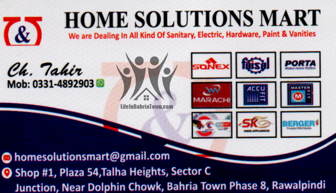 Home Solutions Mart Ch. Tahir Hardware & Sanitary 03314892903 03314*** show Shop#1, Plaza 54, Talha Heights, Sector C Junction, Near Dolphin Chowk, Bahria Town Phase 8, Rwp. Save Submit Review Share Share This Post: facebook twitter linkedin google pinterest Photos Description We are dealing in all kind of sanitary, Electric, Hardware, Paint & Vanities. Add Review & Rate Reply comment Cancel replyName Email Save my name, email, and website in this browser for the next time I comment. Be the first to review “Home Solutions Mart” Cancel reply Quality Location Service Price Name Email Save my name, email, and website in this browser for the next time I comment. Review Drop images to upload or Gallery Images Maps Map Get Directions Close Business Info Get Directions Shop#1, Plaza 54, Talha Heights, Sector C Junction, Near Dolphin Chowk, Bahria Town Phase 8, Rwp. 03314892903 03314*** show homesolutionsmart@gmail.com Today Open MondayOpen All DayTuesdayOpen All DayWednesdayOpen All DayThursdayOpen All DayFridayOpen All DaySaturdayOpen All DaySundayOpen All Day Nearby listings Find more Hardware & Sanitary near Home Solutions Mart Browse Nearby Bakeries Boutiques & Tailors Cash & Carry Cosmetic Education Electronics Eye Fast Food Garments General Store Health Clinics Home Services Jewelry Meat Shops Mobiles and Computers Optics Pharmacy Real Estate Services Shopping Spa & Saloon Sports & Stationery Travel & Tour Show all Statistic 170 Views May 18, 2023
