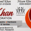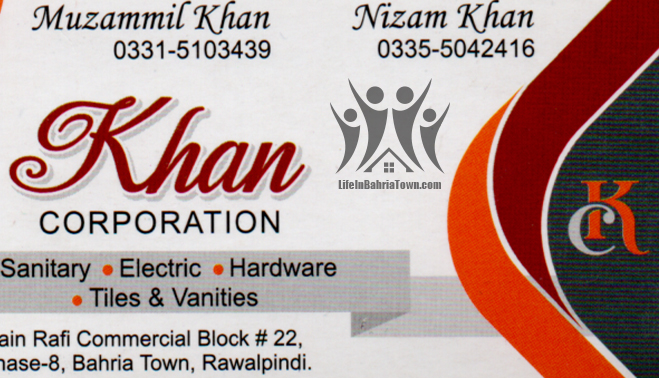 Khan Corporation Nizam Khan Services 03355042416 03355*** show Main Rafi Commercial Block# 22, Phase 8, Bahria Town, Rwp. Save Submit Review Share Share This Post: facebook twitter linkedin google pinterest Photos Description We deals in all kinds of sanitary, electric, hardware, tiles & vanities. Add Review & Rate Reply comment Cancel replyName Email Save my name, email, and website in this browser for the next time I comment. Be the first to review “Khan Corporation” Cancel reply Quality Location Service Price Name Email Save my name, email, and website in this browser for the next time I comment. Review Drop images to upload or Gallery Images Maps Map Get Directions Close Business Info Get Directions Main Rafi Commercial Block# 22, Phase 8, Bahria Town, Rwp. 03355042416 03355*** show Today Open MondayOpen All DayTuesdayOpen All DayWednesdayOpen All DayThursdayOpen All DayFridayOpen All DaySaturdayOpen All DaySundayOpen All Day Nearby listings Find more Services near Khan Corporation Browse Nearby Bakeries Boutiques & Tailors Cash & Carry Cosmetic Education Electronics Eye Fast Food Garments General Store Hardware & Sanitary Health Clinics Home Services Jewelry Meat Shops Mobiles and Computers Optics Pharmacy Real Estate Shopping Spa & Saloon Sports & Stationery Travel & Tour Show all Statistic 162 Views May 18, 2023