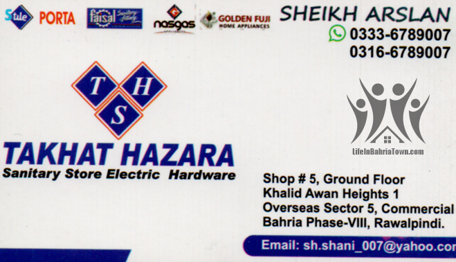 Takhat Hazara Sheikh Arslan Hardware & Sanitary 03336789007 03336*** show Shop#5, Ground Floor Khalid Awan Heights 1, Overseas sector 5, Commercial Bahria Phase 8, Rwp. Save Submit Review Share Share This Post: facebook twitter linkedin google pinterest Photos Description Deals in Sanitary, electric Hardware. Add Review & Rate Reply comment Cancel replyName Email Save my name, email, and website in this browser for the next time I comment. Be the first to review “Takhat Hazara” Cancel reply Quality Location Service Price Name Email Save my name, email, and website in this browser for the next time I comment. Review Drop images to upload or Gallery Images Maps Map Get Directions Close Business Info Get Directions Shop#5, Ground Floor Khalid Awan Heights 1, Overseas sector 5, Commercial Bahria Phase 8, Rwp. 03336789007 03336*** show Today Open MondayOpen All DayTuesdayOpen All DayWednesdayOpen All DayThursdayOpen All DayFridayOpen All DaySaturdayOpen All DaySundayOpen All Day Nearby listings Find more Hardware & Sanitary near Takhat Hazara Browse Nearby Bakeries Boutiques & Tailors Cash & Carry Cosmetic Education Electronics Eye Fast Food Garments General Store Health Clinics Home Services Jewelry Meat Shops Mobiles and Computers Optics Pharmacy Real Estate Services Shopping Spa & Saloon Sports & Stationery Travel & Tour Show all Statistic 141 Views May 18, 2023