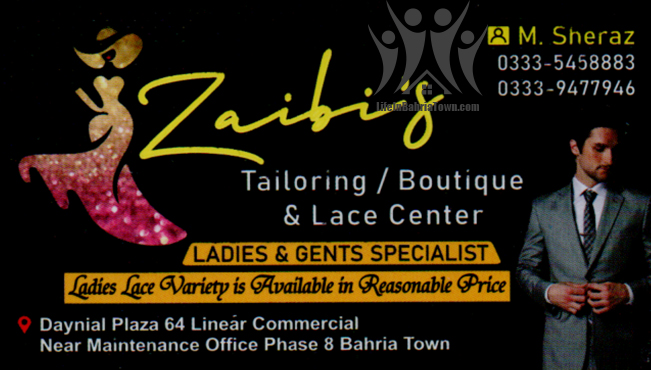 Zaabi’s M. Sheraz Boutiques & Tailors 03335458883 03335*** show Daniyal Plaza 64 Linear Commercial Near Maintenance Office Phase 8 Bahria Town. Save Submit Review Share Share This Post: facebook twitter linkedin google pinterest Photos Description Ladies & Gents Specialist. Ladies Lace variety is available in reasonable price. Add Review & Rate Reply comment Cancel replyName Email Save my name, email, and website in this browser for the next time I comment. Be the first to review “Zaabi’s” Cancel reply Quality Location Service Price Name Email Save my name, email, and website in this browser for the next time I comment. Review Drop images to upload or Gallery Images Maps Map Get Directions Close Business Info Get Directions Daniyal Plaza 64 Linear Commercial Near Maintenance Office Phase 8 Bahria Town. 03335458883 03335*** show Nearby listings Find more Boutiques & Tailors near Zaabi’s Browse Nearby Bakeries Cash & Carry Cosmetic Education Electronics Eye Fast Food Garments General Store Hardware & Sanitary Health Clinics Home Services Jewelry Meat Shops Mobiles and Computers Optics Pharmacy Real Estate Services Shopping Spa & Saloon Sports & Stationery Travel & Tour Show all Statistic 147 Views May 18, 2023