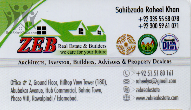 ZEB Real Estate & Builders Sahibzada Raheel Khan Real Estate 03355558078 03355*** show Office # 2 Ground Floor, Hilltop View Tower، 180 Abu-Bakar Ave، Hub Commercial, Bahria Town Ph-8, Rwp. Save Submit Review Share Share This Post: facebook twitter linkedin google pinterest Photos Description Find Commercial Plots for Sale in Bahria Town Phase 8. Add Review & Rate Reply comment Cancel replyName Email Save my name, email, and website in this browser for the next time I comment. Be the first to review “ZEB Real Estate & Builders” Cancel reply Quality Location Service Price Name Email Save my name, email, and website in this browser for the next time I comment. Review Drop images to upload or Gallery Images Maps Map Get Directions Close Business Info Get Directions Office # 2 Ground Floor, Hilltop View Tower، 180 Abu-Bakar Ave، Hub Commercial, Bahria Town Ph-8, Rwp. 03355558078 03355*** show raheelyx@gmail.com www.zebrealestate.com Today Open MondayOpen All DayTuesdayOpen All DayWednesdayOpen All DayThursdayOpen All DayFridayOpen All DaySaturdayOpen All DaySundayOpen All Day Nearby listings Find more Real Estate near ZEB Real Estate & Builders Browse Nearby Bakeries Boutiques & Tailors Cash & Carry Cosmetic Education Electronics Eye Fast Food Garments General Store Hardware & Sanitary Health Clinics Home Services Jewelry Meat Shops Mobiles and Computers Optics Pharmacy Services Shopping Spa & Saloon Sports & Stationery Travel & Tour Show all Statistic 122 Views May 18, 2023